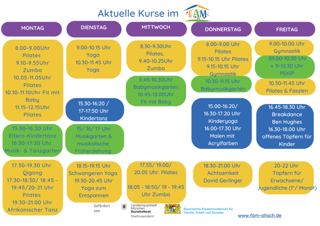z.B. Doing family, Erste-Hilfe, Sprachkurse, Erziehung und mehr
